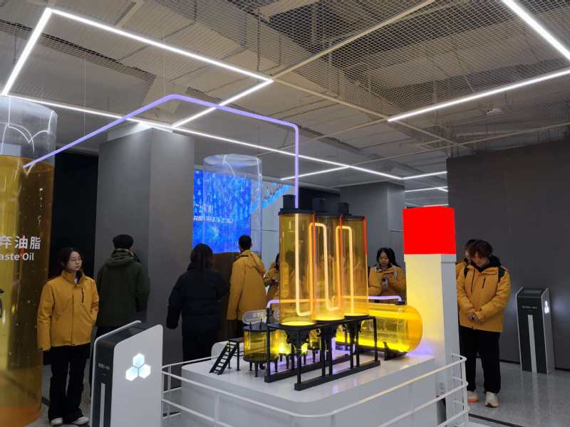 展馆内的垃圾分类小游戏互动区,成为同学们热情高涨的打卡点。大家化身“分类达人”,在趣味闯关中将垃圾分类知识内化于心,切实体会到“前端分一分,后端省十分”的实际意义。在生态修复成果展示区,滚动播放的绿地实景图吸引了众人驻足。讲解员介绍,这些草木葱茏的区域,前身都是垃圾填埋场,通过铺设废水、沼气收集管道,实施生态修复工程,如今已蜕变为生机盎然的绿色空间。“这些修复的场景,待会儿车游时大家都能亲眼看到。”讲解员的话,让同学们对接下来的实地参观充满期待。